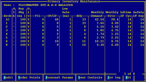 Since seven branches are in need of inventory, 700 items are purchased. This may cause other products that might have been included on the Suggested PO Queue to be dropped from the suggestion because the system tries to meet the vendor target of 500. One product needs a quantity of 700 to be purchased. Other products that are below line point, but not below order point, are eliminated from the purchase.