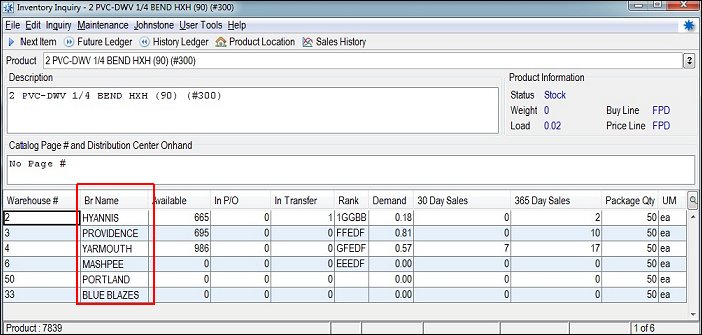 Note: Inventory Inquiry and AR Inquiry have the additional option to use the Screen-Active ID from the screen, example in Inventory Inquiry the Screen-Active ID is the product ID. This allows you to display branch specific product information in the table. Example: Screen-Active ID * Warehouse Br is the key to the PROD.BR file. |