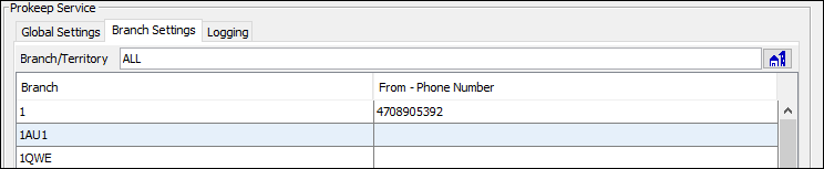 On the Branch Settings tab, for each branch indicate the telephone number that your customer sees the text is coming from. You would typically use a number that is recognizable as being from your branch, so your customer would understand the text is from your company.